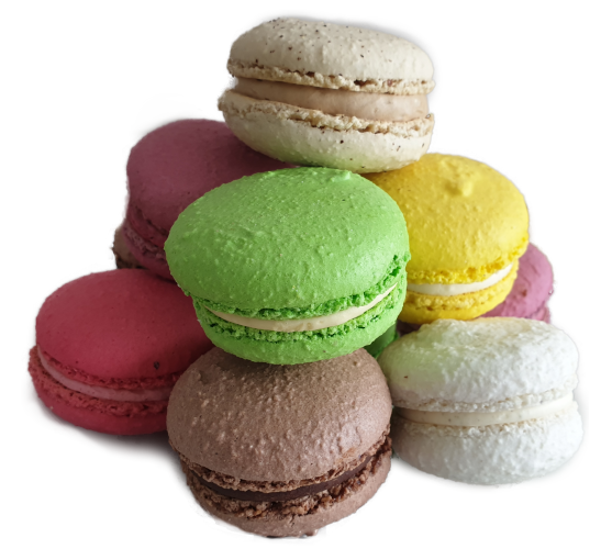 Macarons sind diese runden Dinger, die in vielen Farben leuchten und wunderbar intensiv schmecken. Macarons sind Klassiker der französischen Patisserie. Wir stellen sie nach original französischen Rezepturen her, in ganz unterschiedlichen Geschmacksrichtungen wie Schokolade, Vanille, Kaffee, Himbeere, Cassis, Pistazien und Zitrone. Es gibt sie klein wie ein Konfekt und groß wie ein Törtchen.